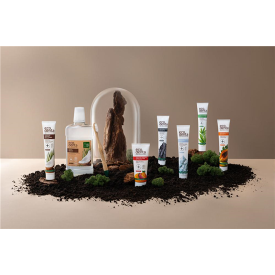 Certified Organic whitening formula with a refreshing fruity taste. The mix of black charcoal plus aloe vera juice and peppermint oil brings out the best and tastiest in oral defence! It protects against plaque, cavity and tartar formation and provides tropical freshness. Fluoride free!