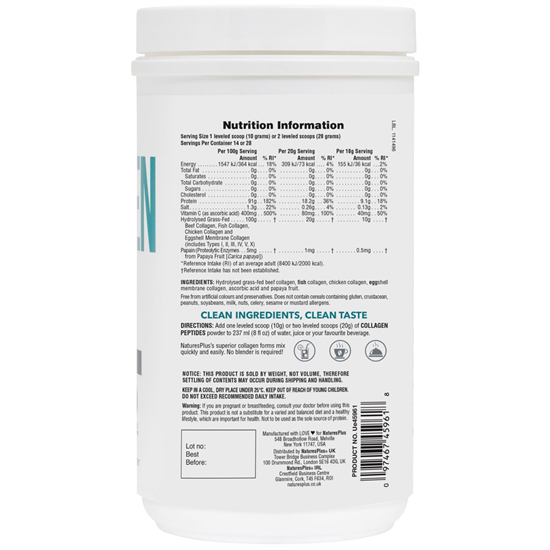 Collagen is the primary structural protein, providing support and functionality to all body tissues and systems. Nature's Plus collagen powder contains the highest quality pure hydrolyzed collagen, supported by digestive enzymes to maximize absorption and provides the six major collagen types.