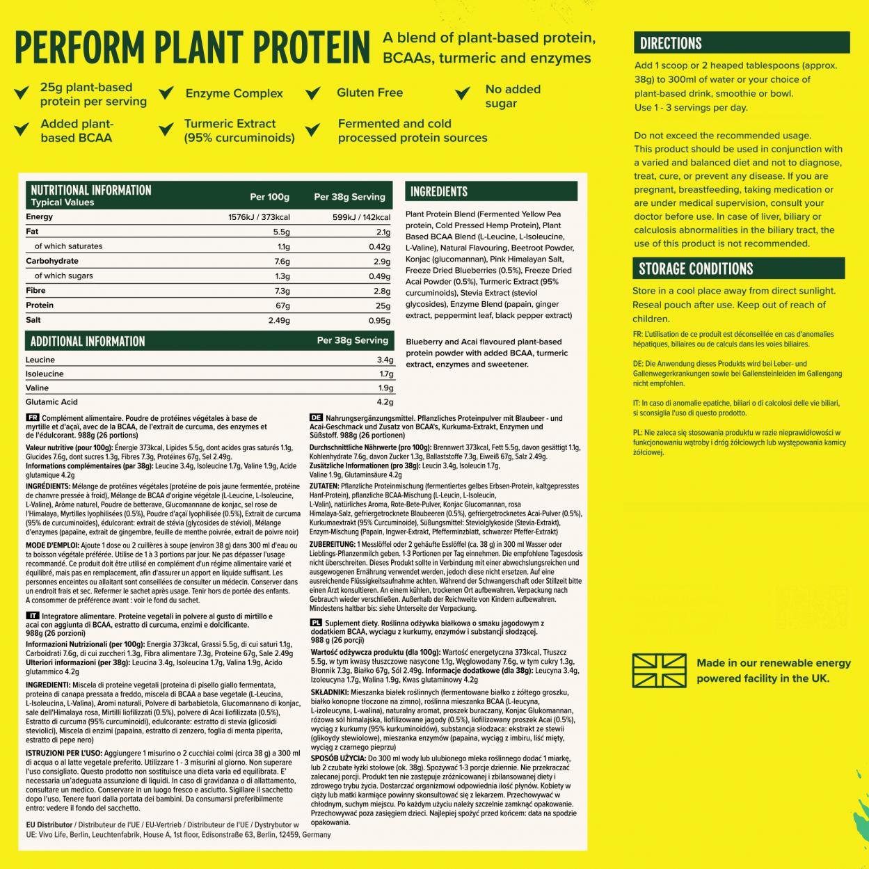 Perform Raw Plant Protein & BCAA Acai & Blueberry 988g
