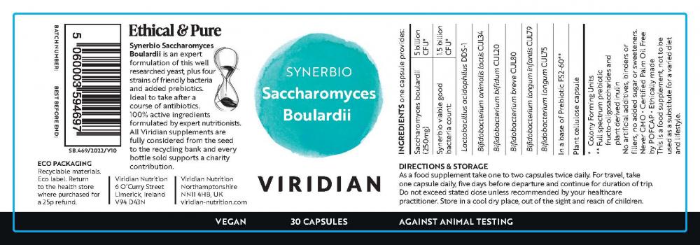 Synerbio Saccharomyces boulardii is an expert formulation comprising good gut bacteria with added ‘prebiotics’. Ideal to take after a course of antibiotics.