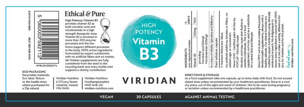 High Potency Vitamin B3 provides vitamin B3 as nicotinic acid and nicotinamide. These two forms play different roles in the body. Note: Nicotinic acid may cause skin flushes in sensitive individuals.