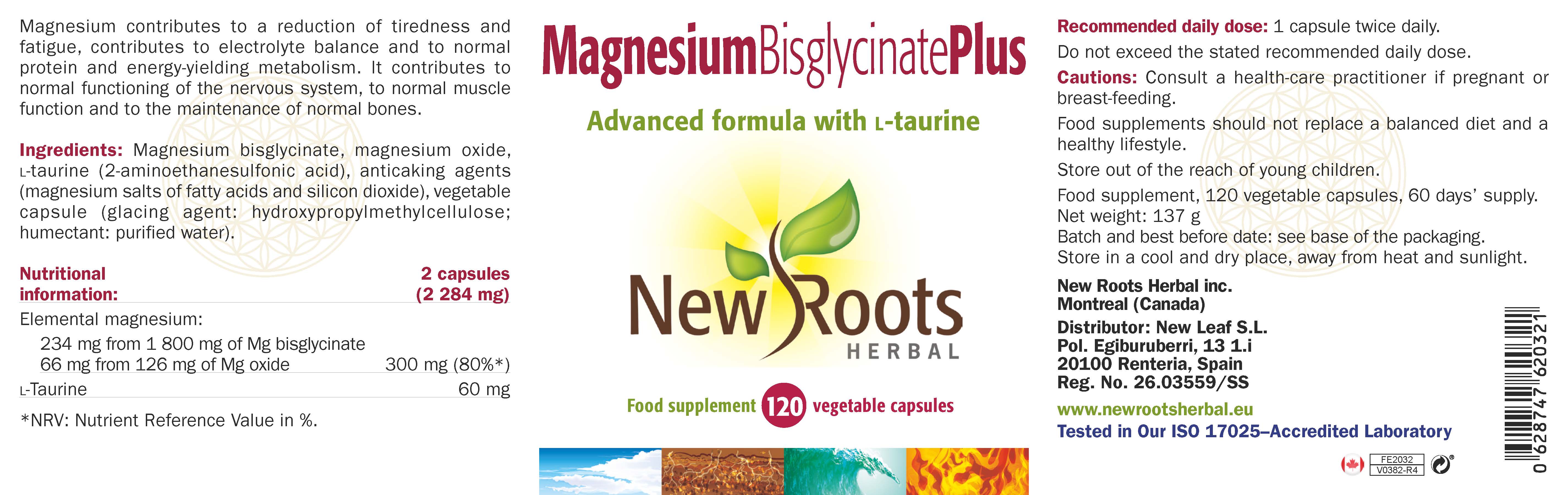A food supplement containing magnesium bisglycinate, the most bioavailable magnesium form of this micronutrient, and the amino acid ʟ-taurine to improve the assimilation. The product provides 150mg elemental magnesium per capsule.