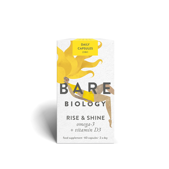 Bare Biology Rise & Shine is a nutritional powerhouse of omega-3 combined with vitamin D3. It covers a multitude of health needs, crucially including the immune system. A 30 day supply of just two capsules a day provide 25 micrograms (1,000iu) of vitamin D3 plus 1035mg EPA and 470mg DHA.