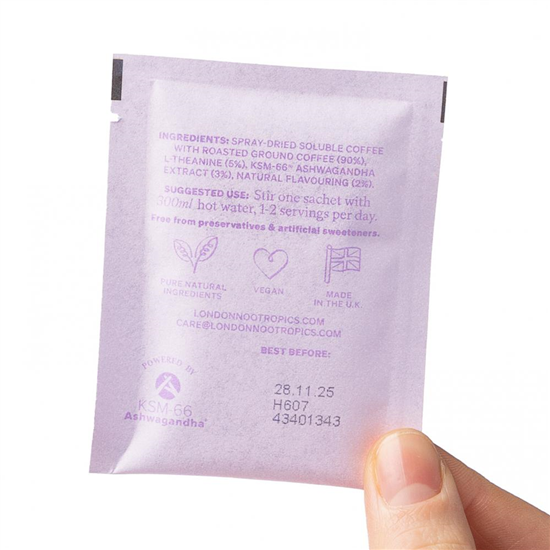 Zen: barista-style coffee, L-theanine, KSM-66 organic ashwagandha root extract, natural flavouring